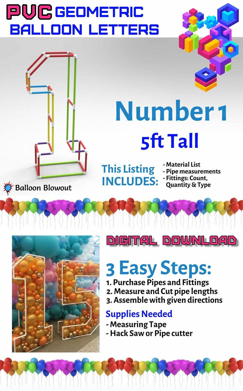 PVC Geometric Balloon Mosaic Template Number One 1 Five 5ft
